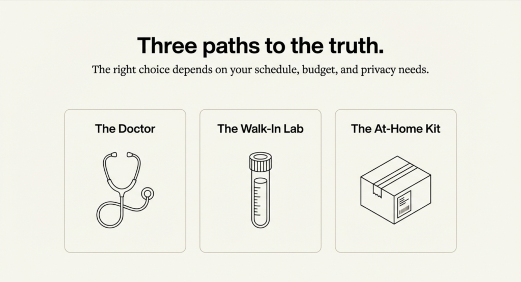 The most accurate way to test testosterone is a morning blood test between 7 and 10 AM that checks total and free testosterone. You can test through your doctor, a walk-in lab like Quest or Labcorp, or an at-home finger-prick kit. Sleep well, avoid hard workouts and alcohol the day before, and test early in the day. If results are low, repeat the test to confirm before starting treatment.