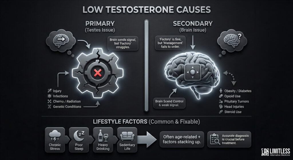 While diet and exercise are vital, so are proper sleep and healing time. When you overtrain, high levels of cortisol might result from which your body loses testosterone production. Get adequate sleep, allow your muscles time to repair, and schedule rest days to help you avoid stress and maintain the balance of hormones.